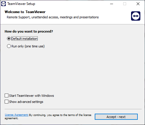 Step 2 – Open the Downloaded file and install TeamViewer using the Default options.